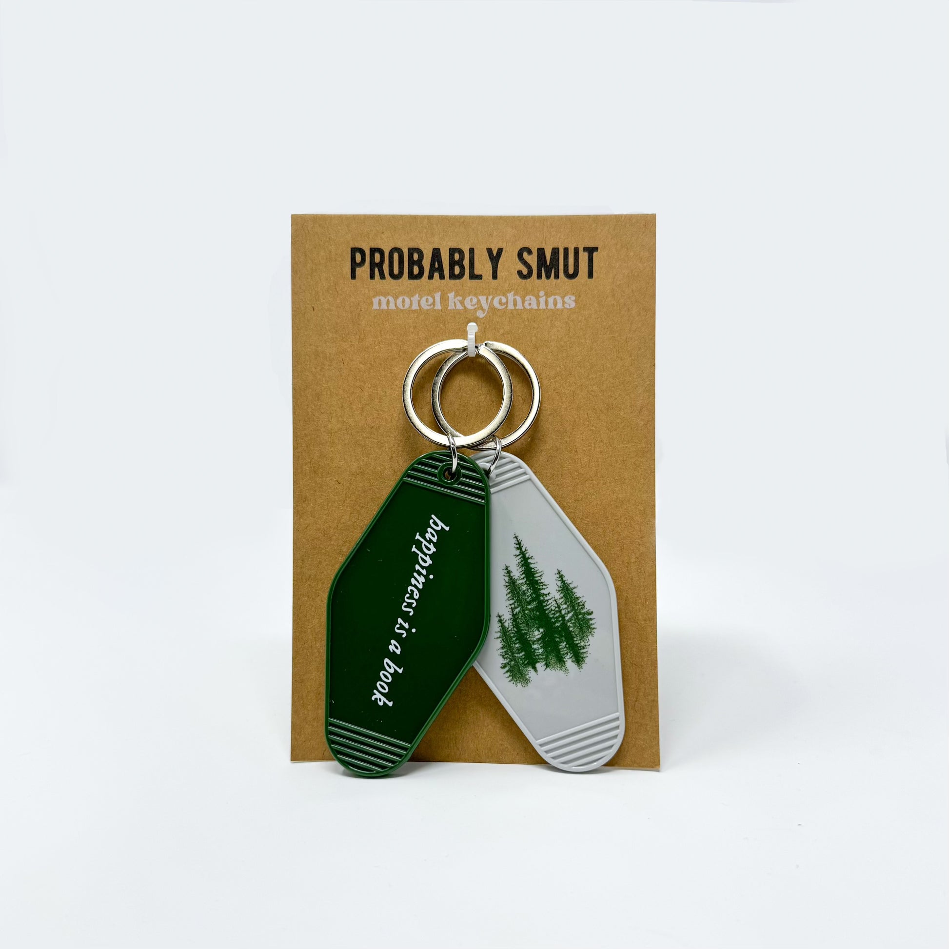 happiness is a book keychain set